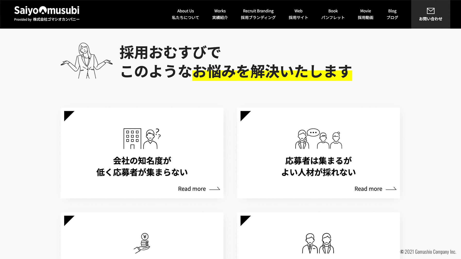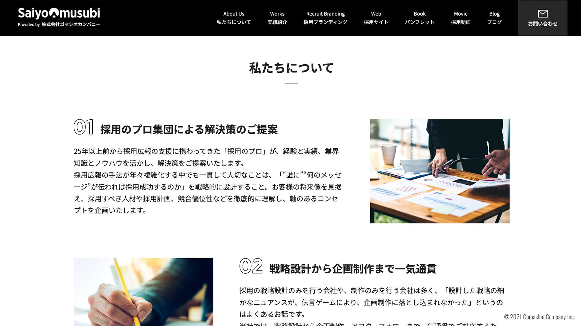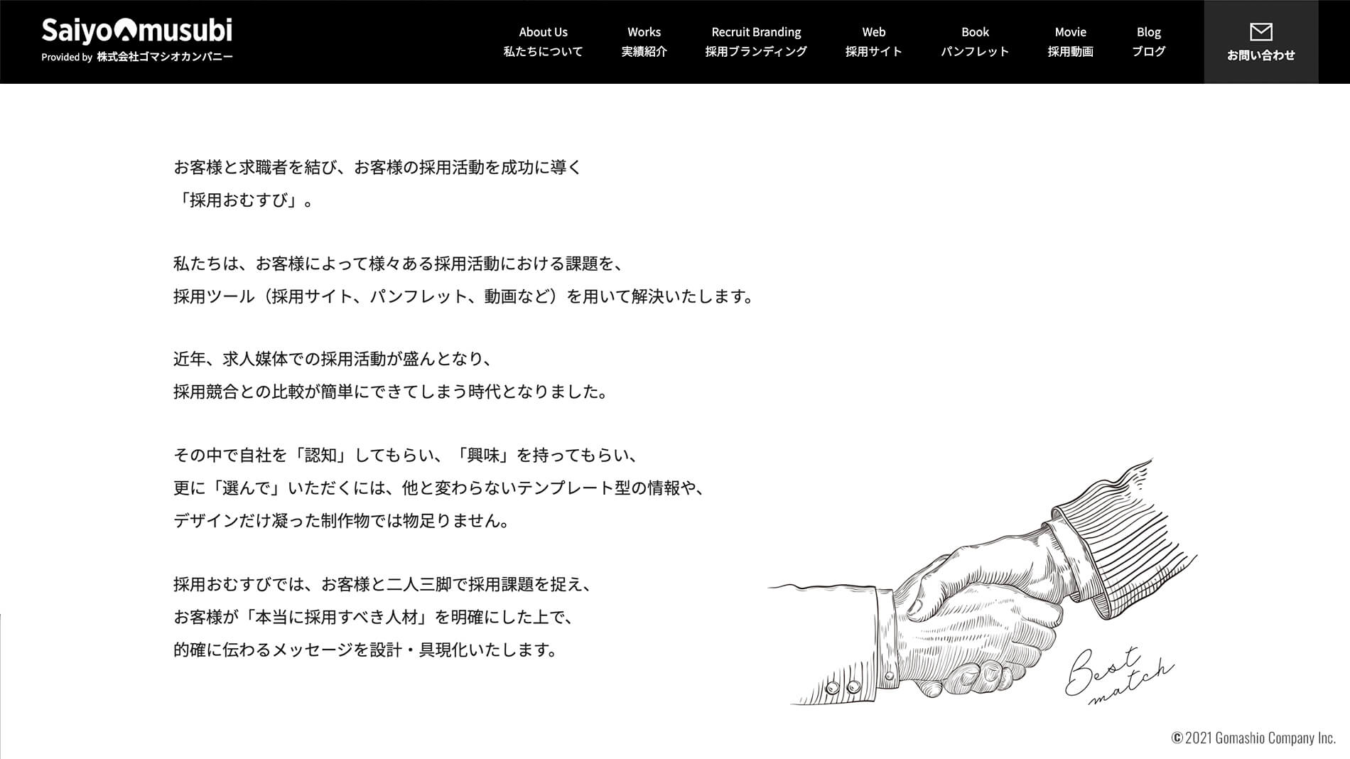 採用制作に特化したゴマシオカンパニーの採用担当者向けサイト「採用おむすび」のサイトを制作いたしました。